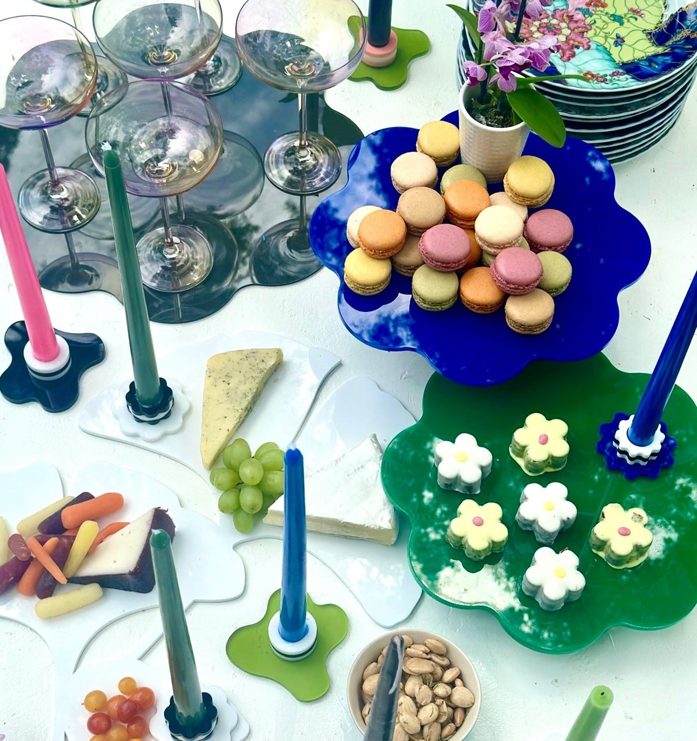 Our EXTRA WAVY candlestick holder is for the wild + free, those who know what they like + celebrate their uniqueness. With its whimsy shape + fun color possibilities, it brings just the right amount of funk to any décor. Did we mention that acrylic is up to 17 times more durable than glass and can be easily wiped down + reused? It's lightweight + weather + UV-resistant too, so enjoy your pieces inside or al fresco for many years to come.