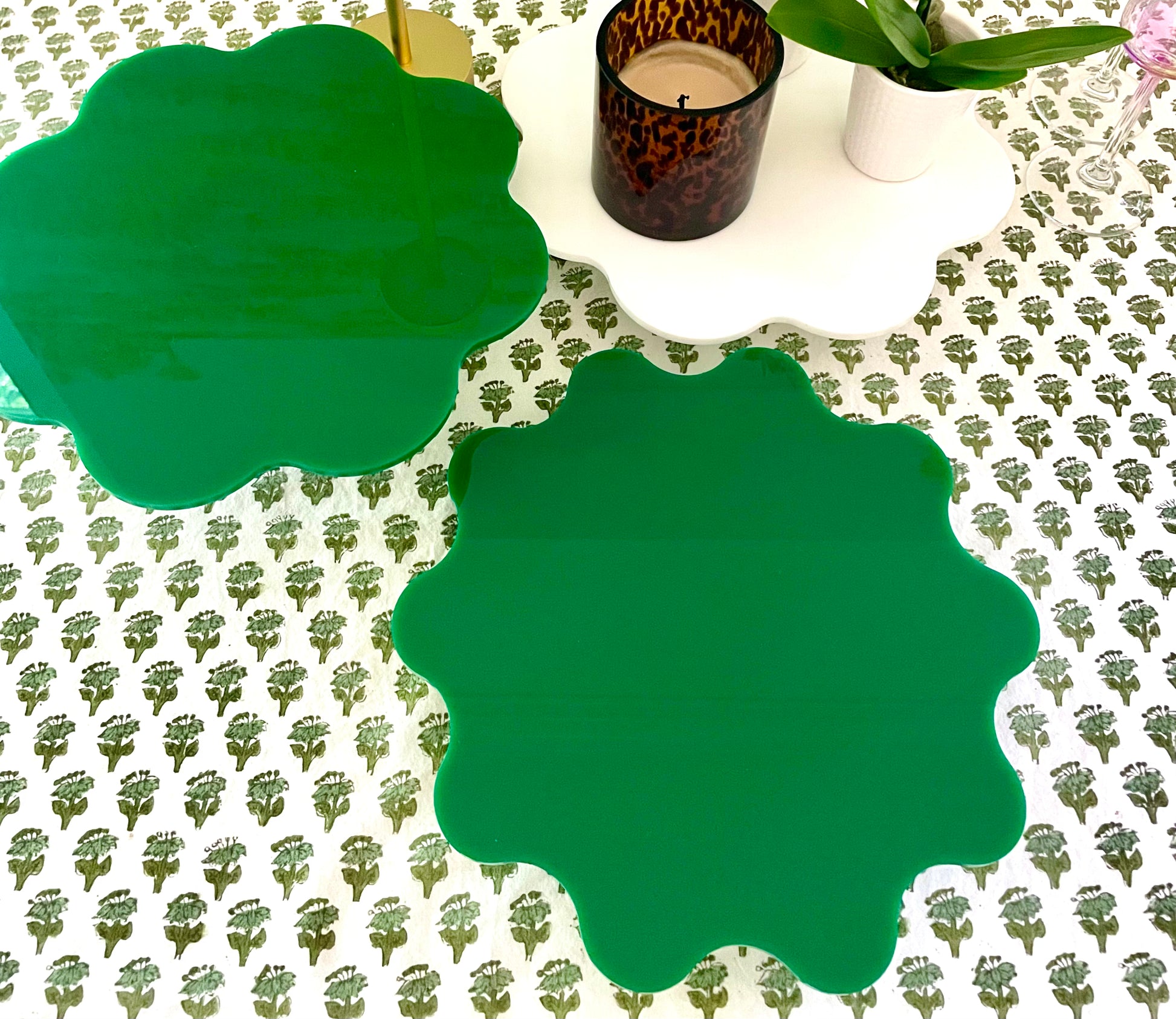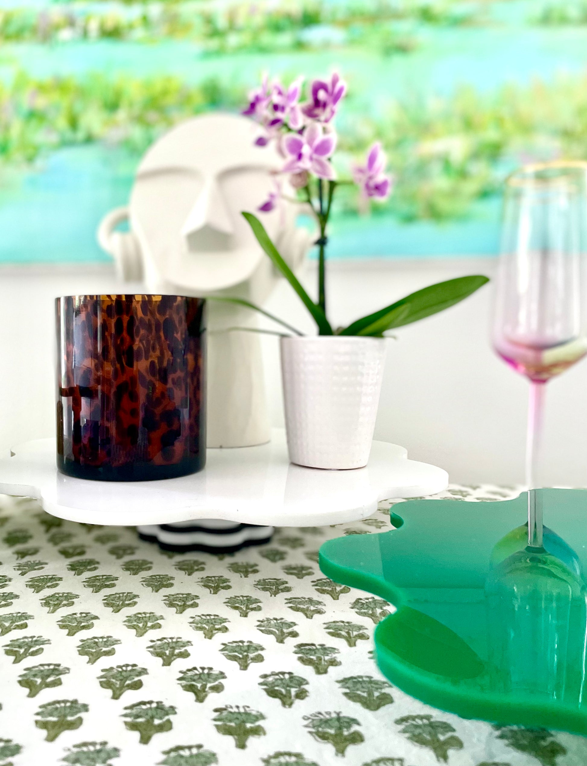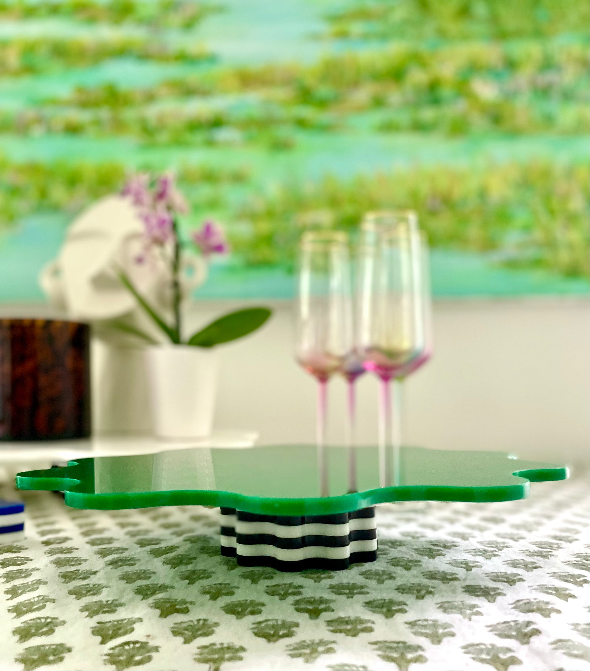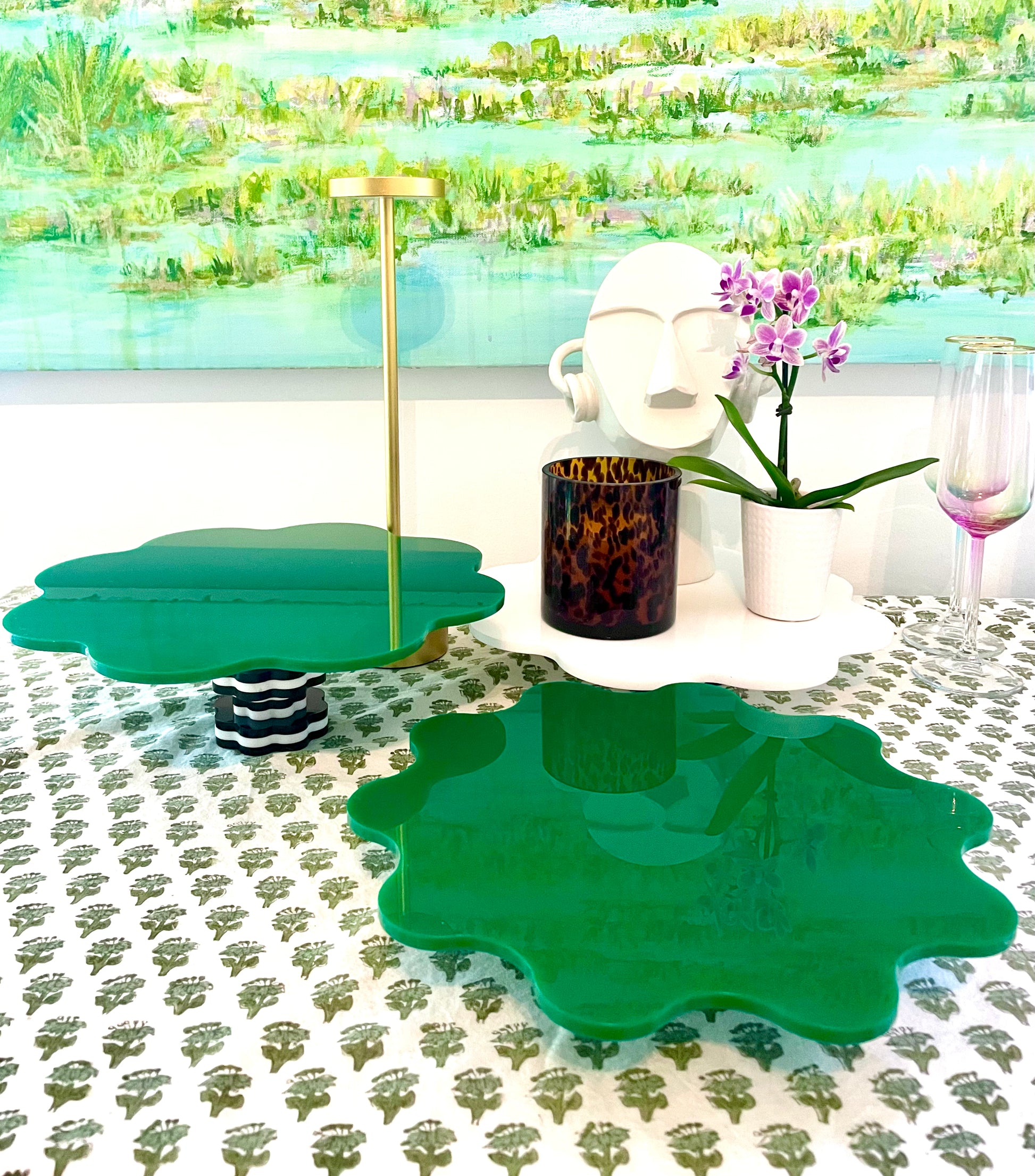 Our EXTRA WAVY platters are for the wild + free - those who know what they like + celebrate their uniqueness. With their whimsy shape, their height + their fun color possibilities, they bring just the right amount of funk to any decor. Use it to show off your baked masterpiece as a cake stand, display your favorite candle and vase duo as a tray, display in a bookshelf for a unique touch, or all of the above! Did we mention that acrylic is up to 17 times more durable than glass and can be easily wiped down + reused? It's lightweight and weather + UV-resistant too, so enjoy your pieces inside or al fresco for many years to come.