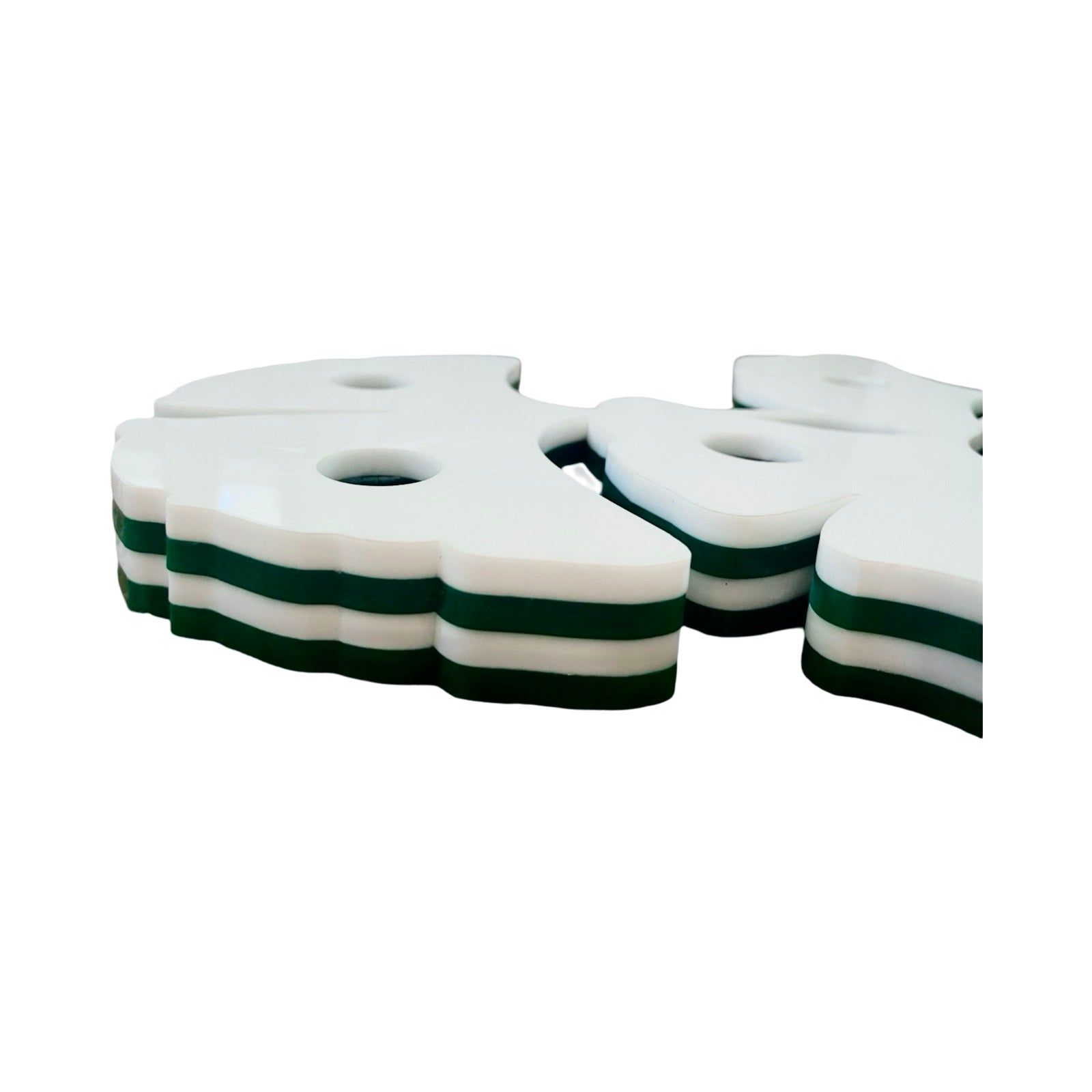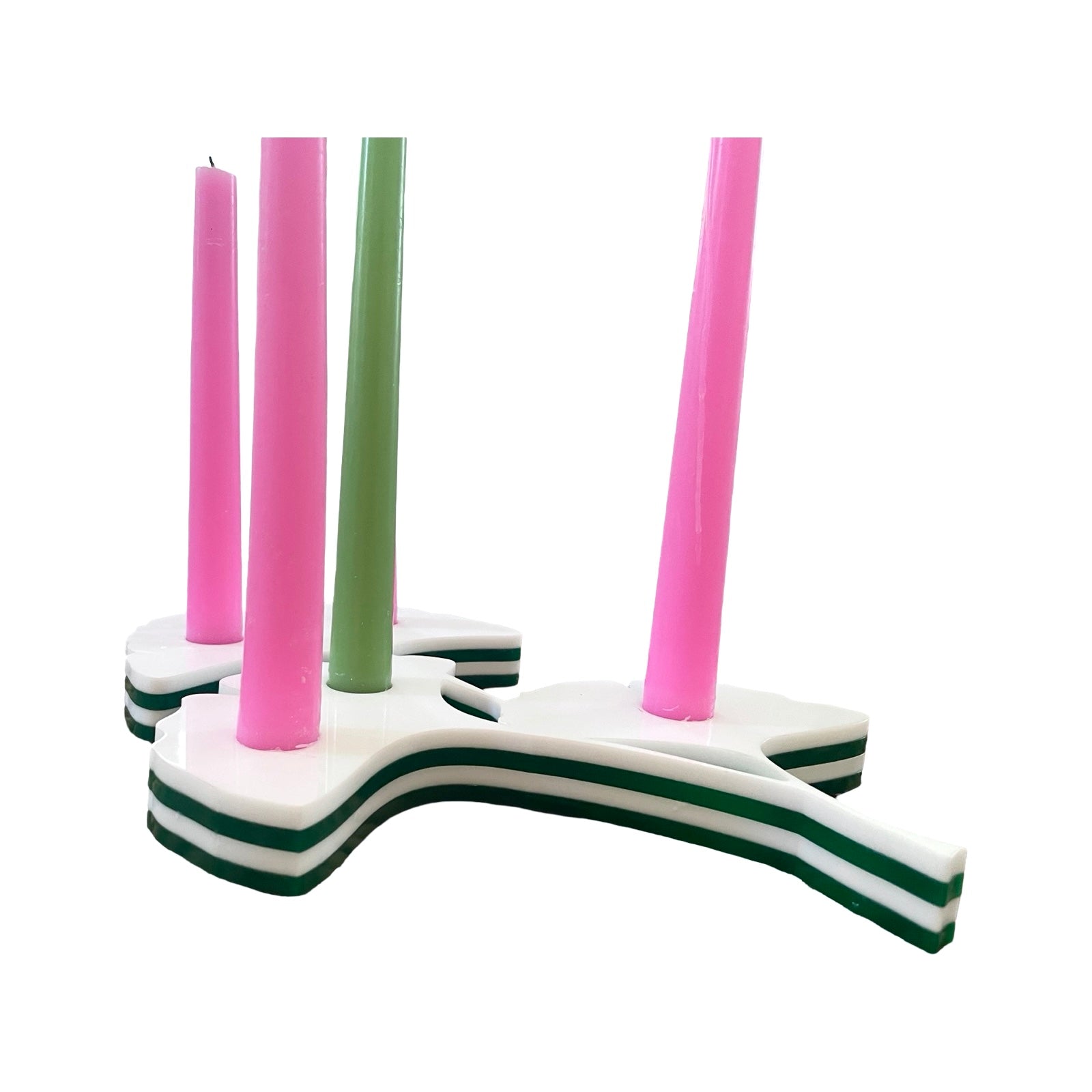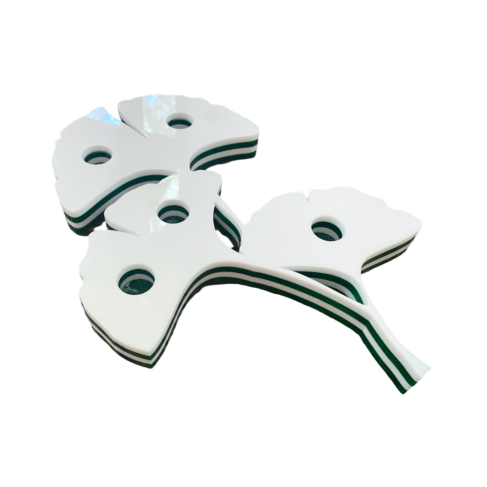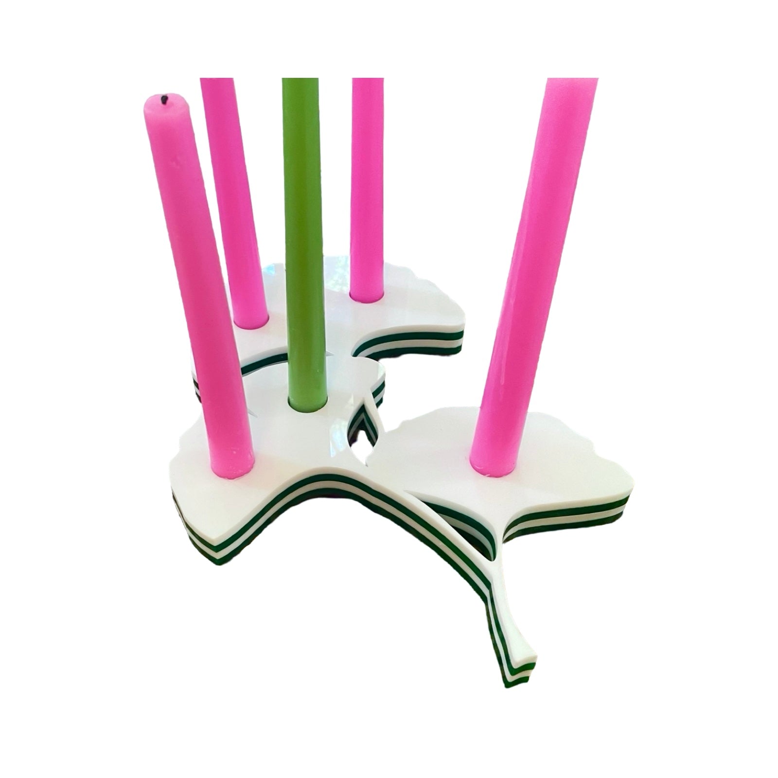 The Ginkgo Leaf is a symbol of resilience + longevity. It is thought to bring peace, healing, and hope to those who wear or use it. Our Ginkgo platters + candlestick holder will add a special touch to your home and serve as a reminder to slow down, breathe + live in the moment. Use the Ginkgo Trio Candlestick Holder to display your favorite candles + add a unique touch to any table. Did we mention that acrylic is up to 17 times more durable than glass and can be easily wiped down + reused? It's lightweight and weather + UV-resistant too, so enjoy your pieces inside or al fresco for many years to come.