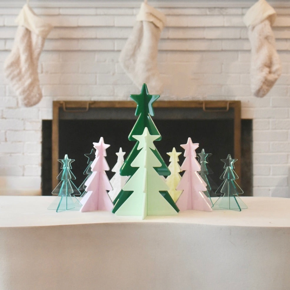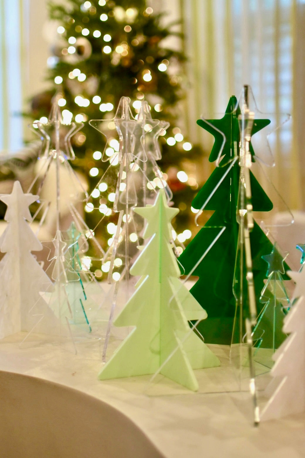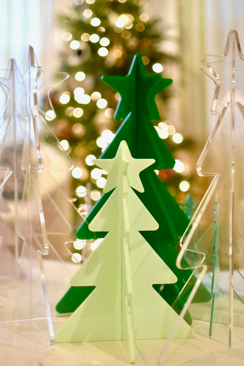 ADD SOME MODERN CHARM TO YOUR DECOR THIS SEASON WITH OUR ACRYLIC HOLIDAY TREES. THEY STAND ON THEIR OWN - JUST CAREFULLY SLIDE THE TWO SLOTS TOGETHER TO ASSEMBLE. BONUS: THEY LAY FLAT FOR STORAGE WHEN THE SEASON HAS ENDED!