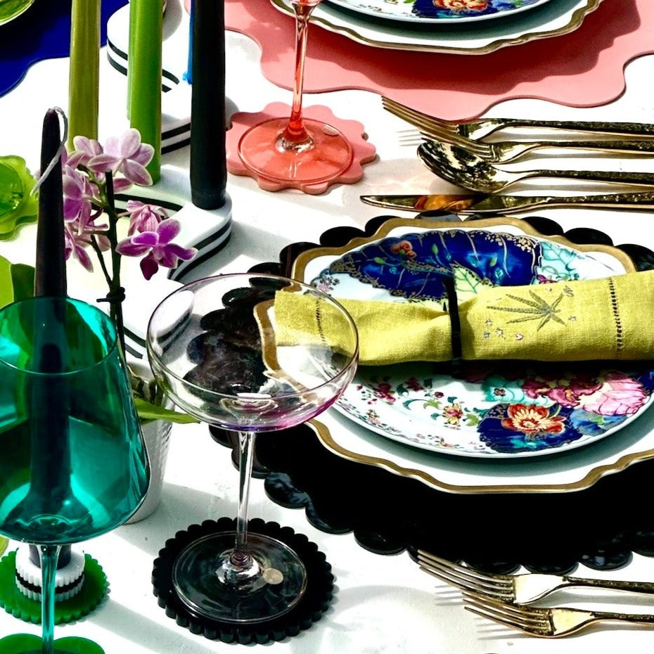 Our new Host Collection includes funky chargers, coasters, napkin rings, platters + candlestick holders, available in a variety of colors, shapes + sizes to choose from. We offer bundles for a great bang-for-your-buck option or you can mix-and-match to your heart's content.