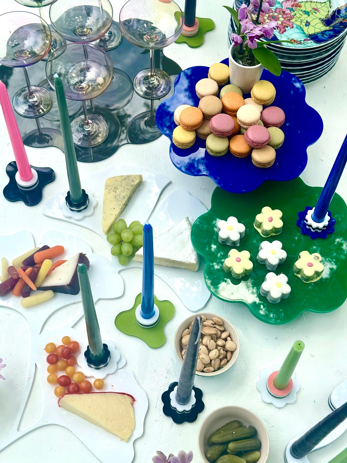 Our WAVY candlestick holder is for the flower-child at heart - the pleasant, easy-going one who lives + lets live. Its floral-like shape + fun color possibilities bring a touch of softness that will compliment any decor. Did we mention that acrylic is up to 17 times more durable than glass and can be easily wiped down + reused? It's lightweight and weather + UV-resistant too, so enjoy your pieces inside or out for many years to come.